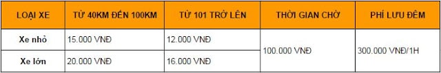 – Áp dụng với các điểm đến cách Hà Nội từ 40km/1 chiều trở lên mới làm hợp đồng.